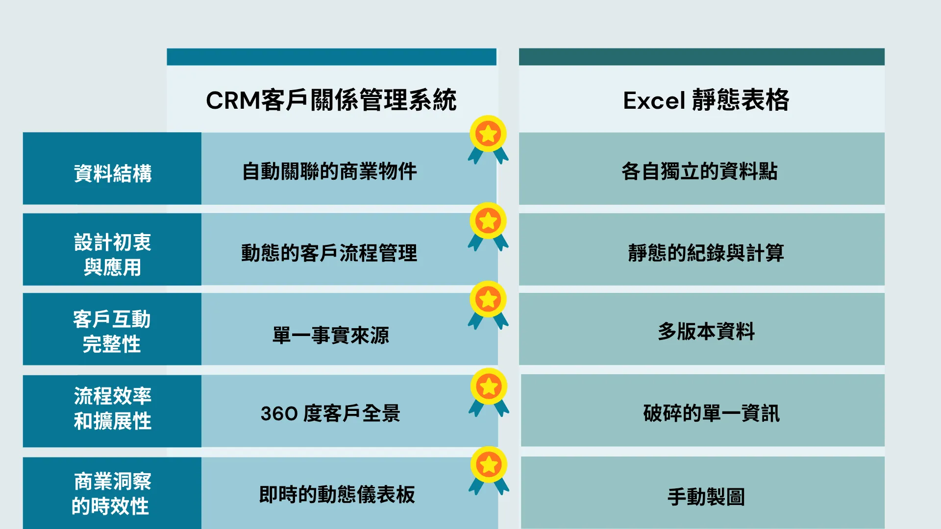 Excel 的核心是「電子表格」,而 CRM 的核心是「客戶關係」。